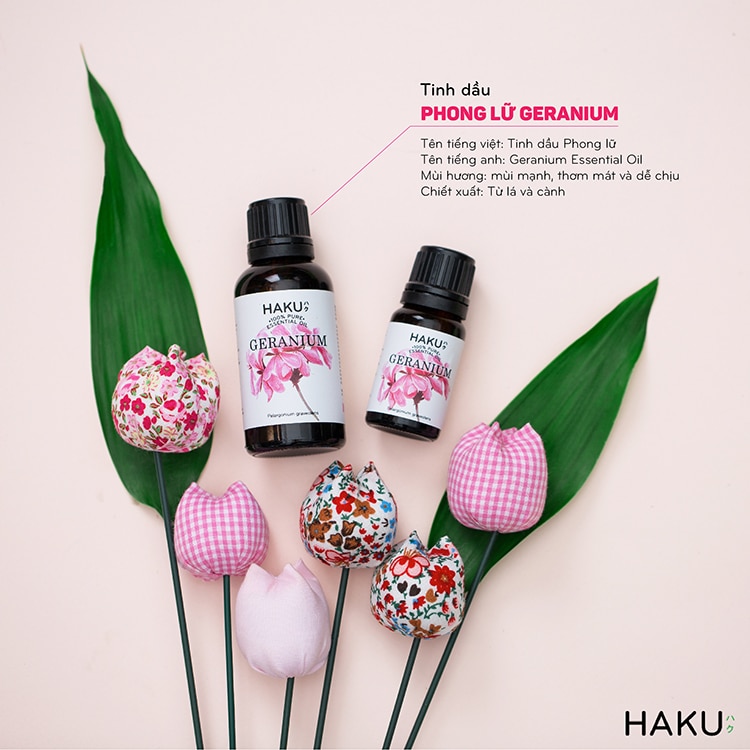Tinh dầu phong lữ Geranium mùi hoa thơm ngọt ngào, tươi mát và sảng khoái giúp khử mùi, thanh lọc không khí, tạo môi trường gần gũi với thiên nhiên, sự lãng mạn cho phòng ngủ, nâng cao tinh thần, tăng sự tập trung và hiệu quả làm việc – đọc sách, chăm sóc da, mái tóc, đuổi muỗi và đuổi côn trùng.